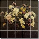 | ✚✚✚ Henri Fantin-Latour Flowers Shower Tile Mural 11. 40x40 Inches Using (25) 8x8 ceramic tiles. We custom make every ceramic tile mural one piece at a time. Our staff pay great attention to detail & will work with you in designing your perfect mural. Our murals are used in kitchen back splashes bathroom shower walls any indoor wall or outdoor shaded area (no direct sun but all weather stable). Contact us with any questions or to request a quote. FREE SHIPPING to US addresses.